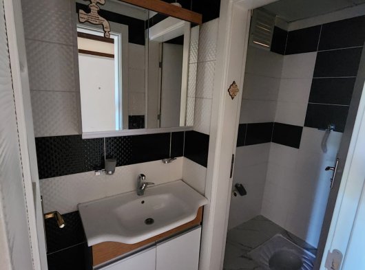 duvar kağıtlı, cam balkonlu, 3 lü ankastre set mevcut.