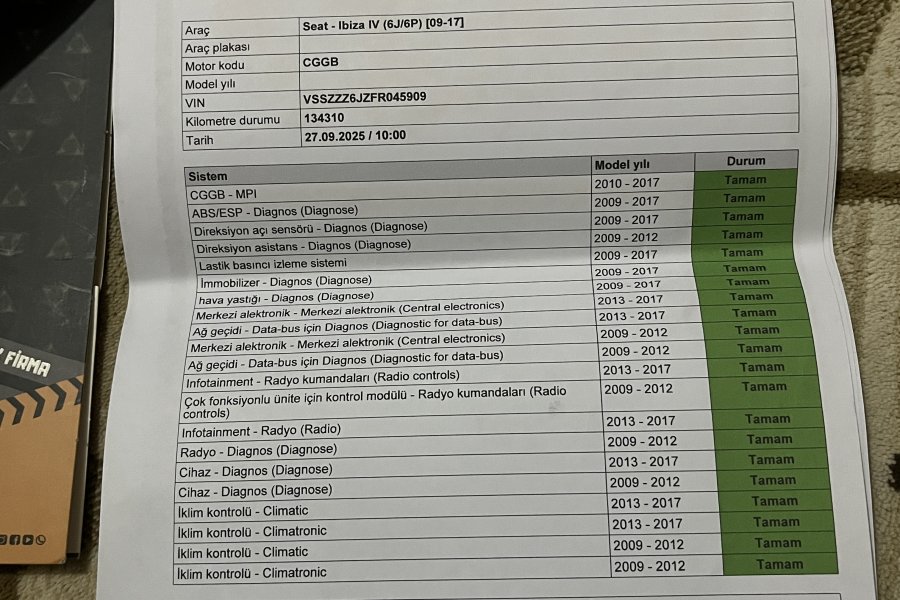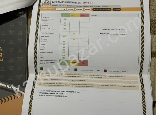Bakımları zamanında yapılmıştır, fotoğrafları mevcuttur. Gelecek bakım 140.000 km