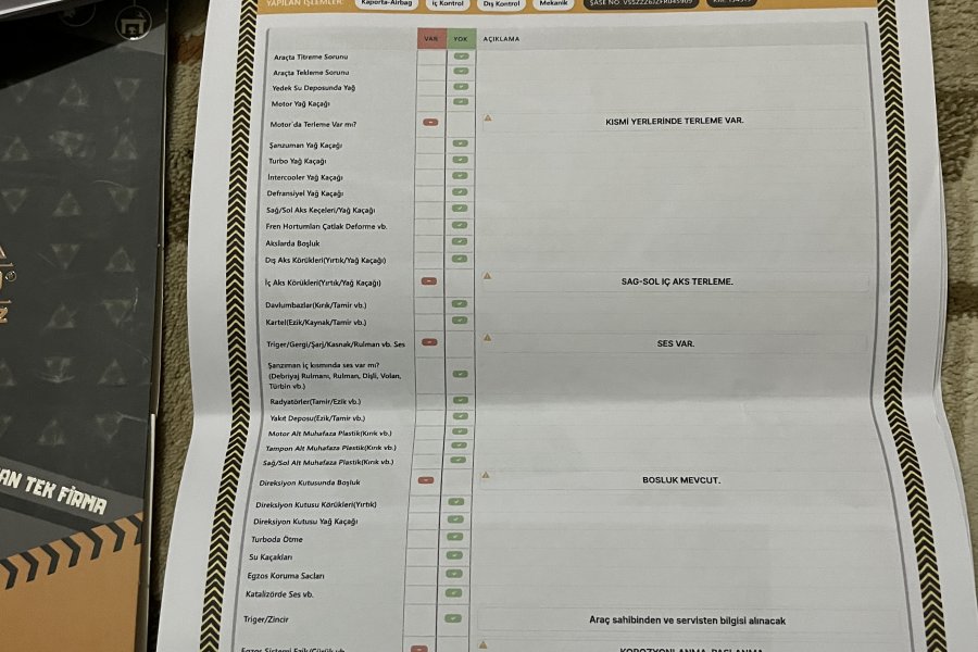 -sol ön kapının döşemesinde ufak bir sigara yanığı var önceki sahibinden kalma , temiz ,dikkatli ve özenli binmeye çalıştım.